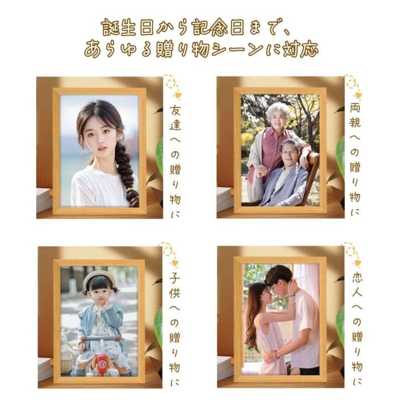 主体が中央に配置されている写真をご用意いただければ、レイアウトが美しく仕上がります。主体が中央からずれている場合、一部がカットされる可能性がございますのでご注意ください。