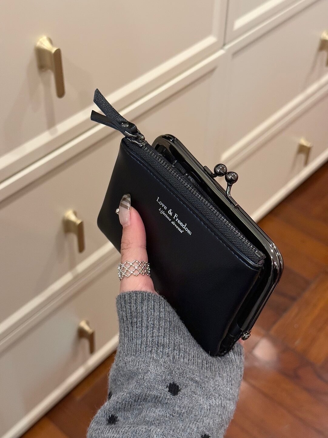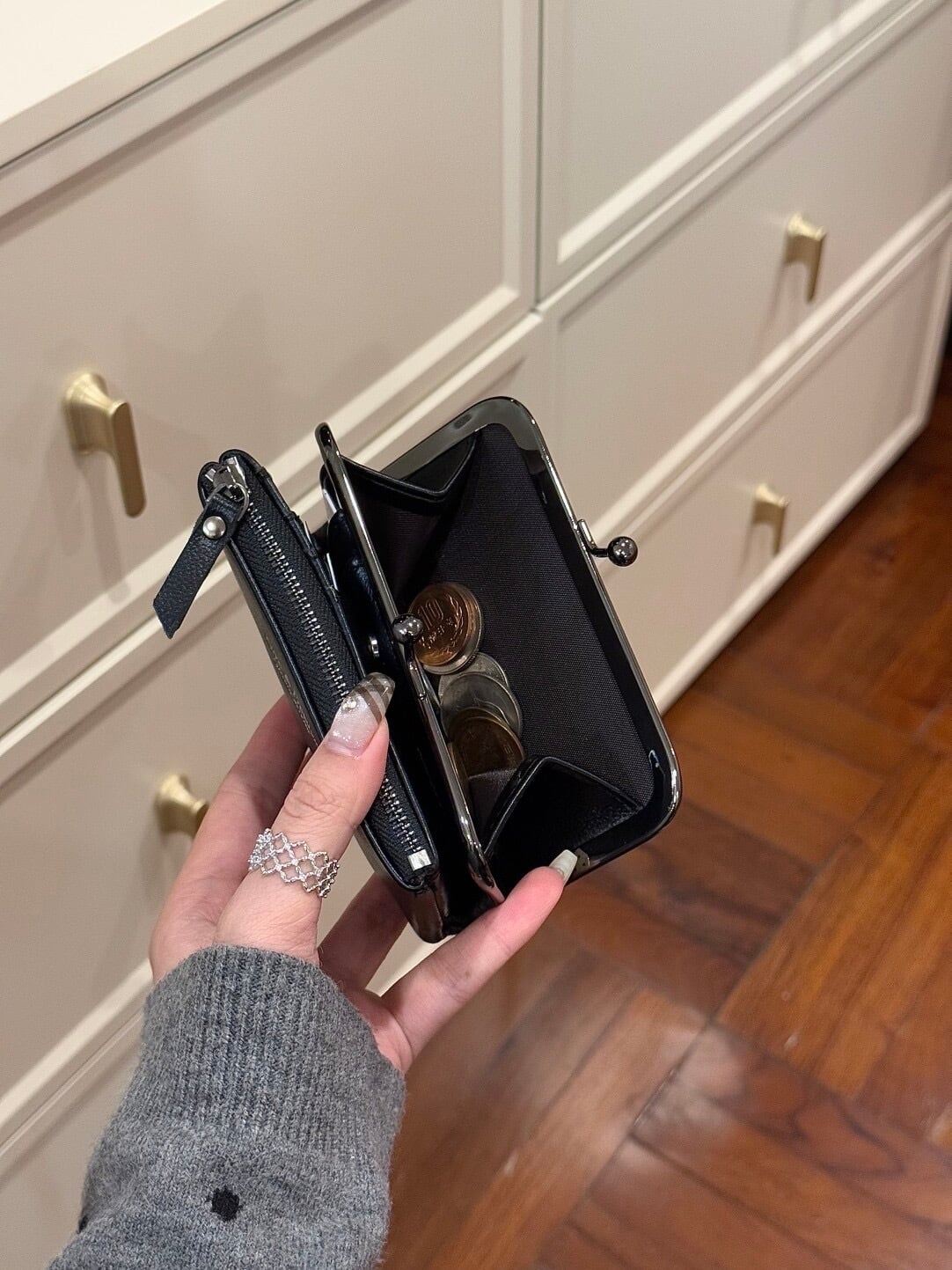 INS風 ゴールド金口 小銭入れ コインケース レディース 小型財布 キーケース付き財布