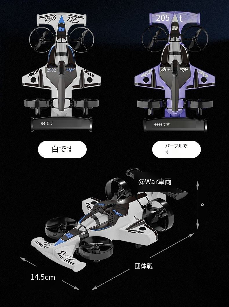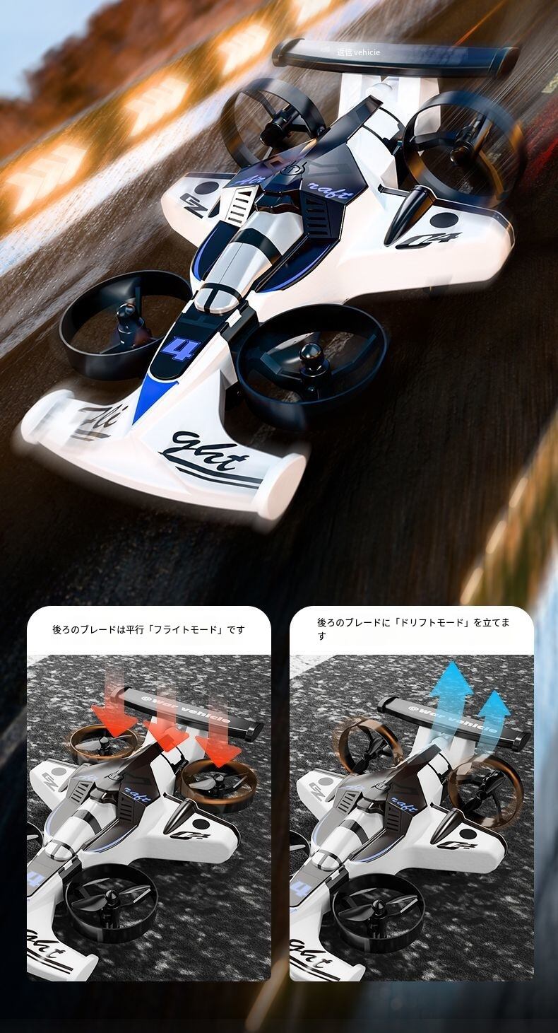 空中モードでは、機敏で俊敏なリモコン飛行機になり、反応が速く飛行が安定しているため、初心者でも簡単に操作でき、室内外の空間を自由に往来;陸上モードに切り替えると、瞬時にクールなドリフトカーに変身し、ドリフト、ステアリングなどのスタントアクションを正確に完成させ、スムーズな走行で没入感あふれる操作快感を提供。