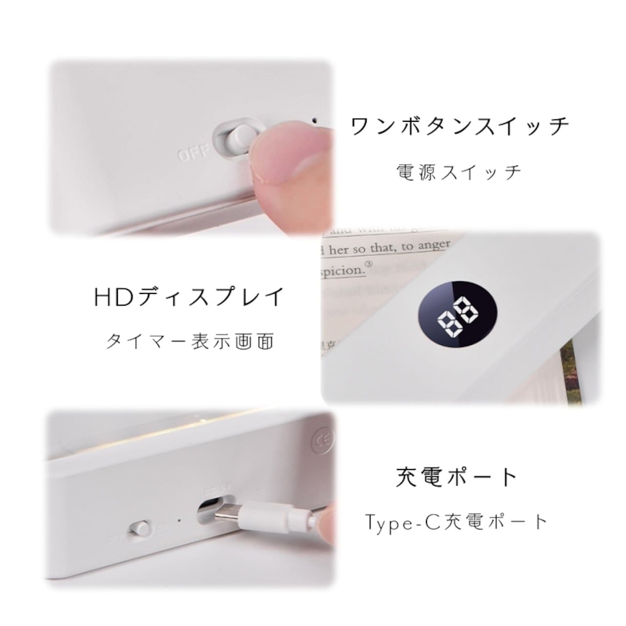 ブックライトとして本に挟み、デスク/ベッドサイドランプとして立てて使用可能。付属のタイマー機能で、読書中や就寝時のうっかり消し忘れも安心です。