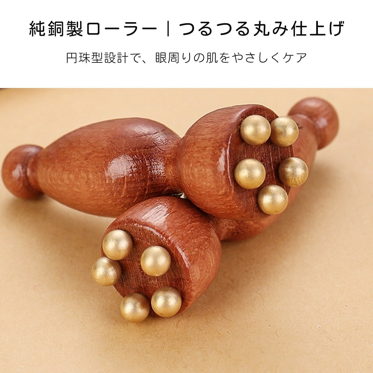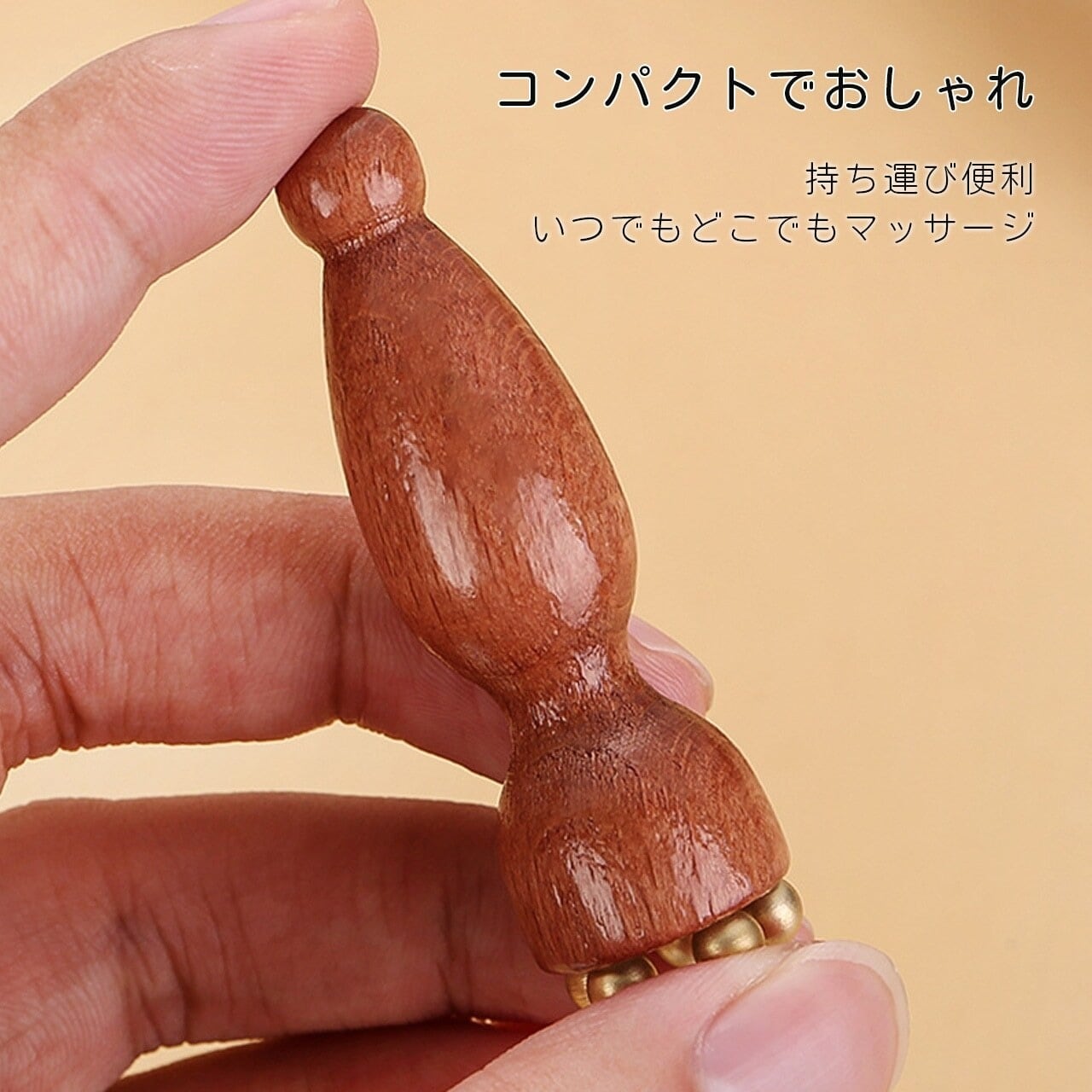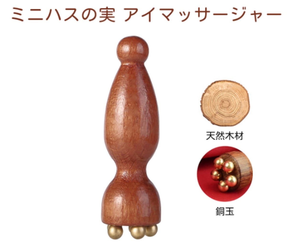 T2.木製真鍮製 ミニハスの実マッサージ棒|顔・目元両用 ツボ押し撥筋 美容ケアツール | serashop