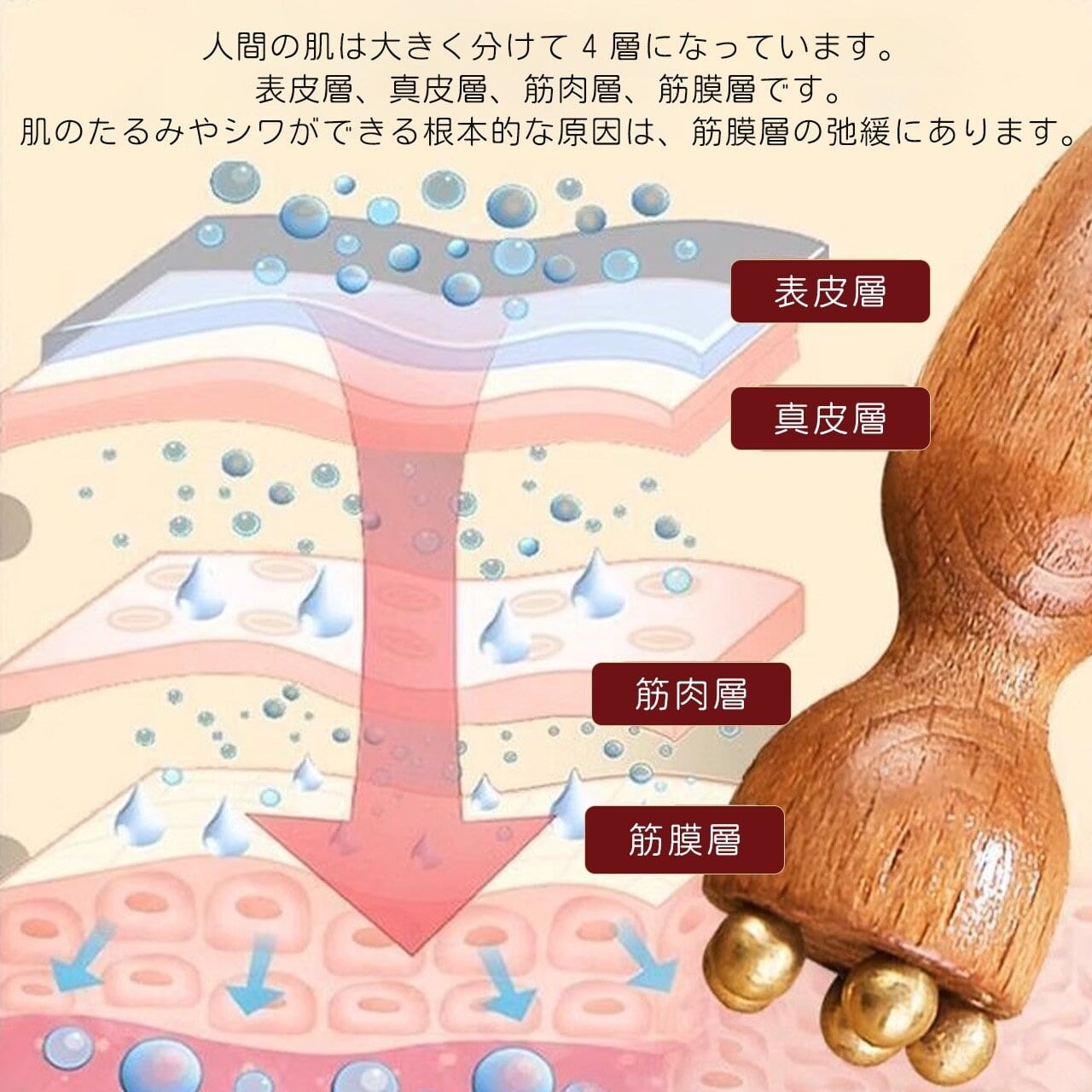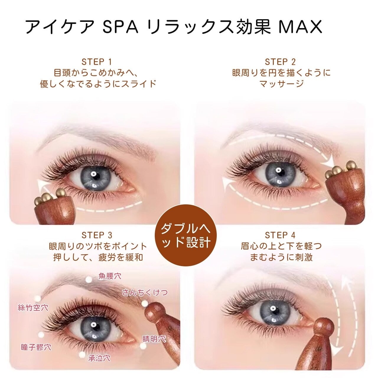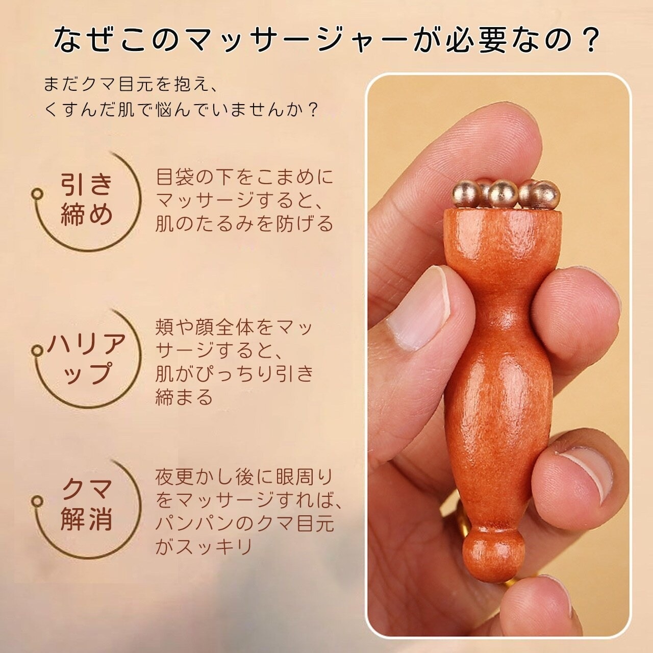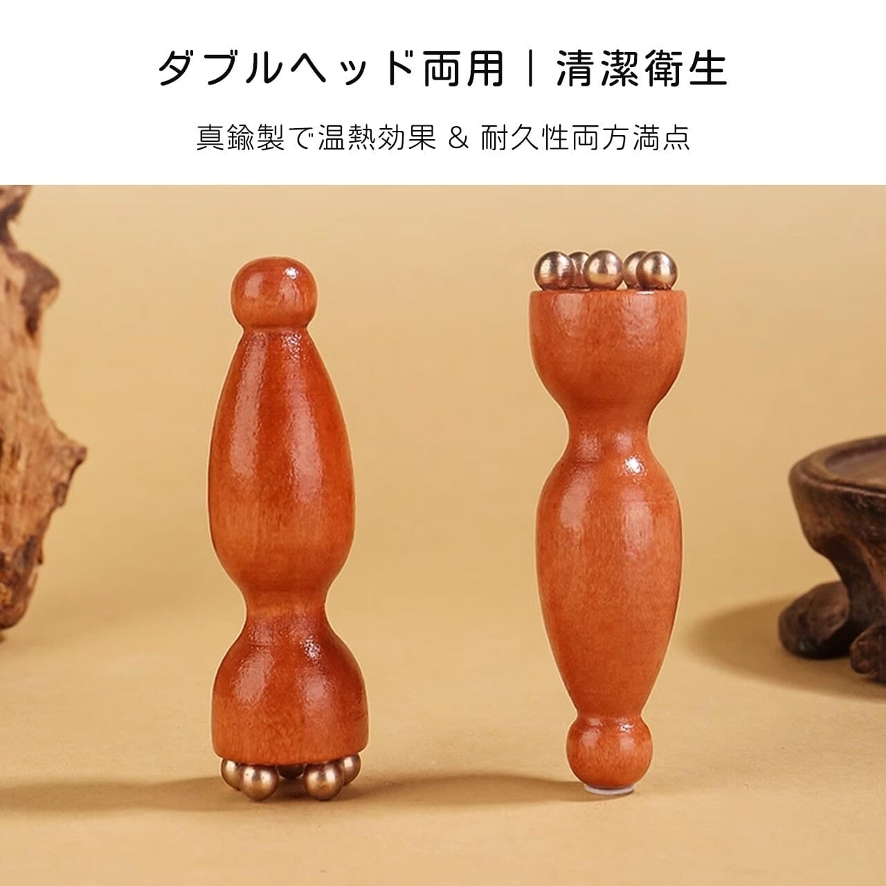 T2.木製真鍮製 ミニハスの実マッサージ棒|顔・目元両用 ツボ押し撥筋 美容ケアツール | serashop